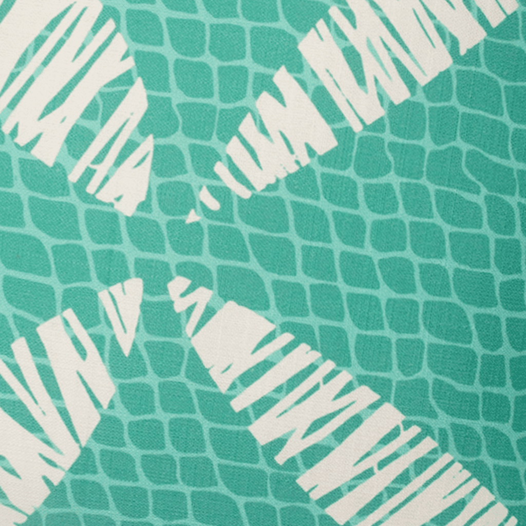 Closeup Ivory and Teal Kapua Kai Square Pillowcase Hawaiian Print