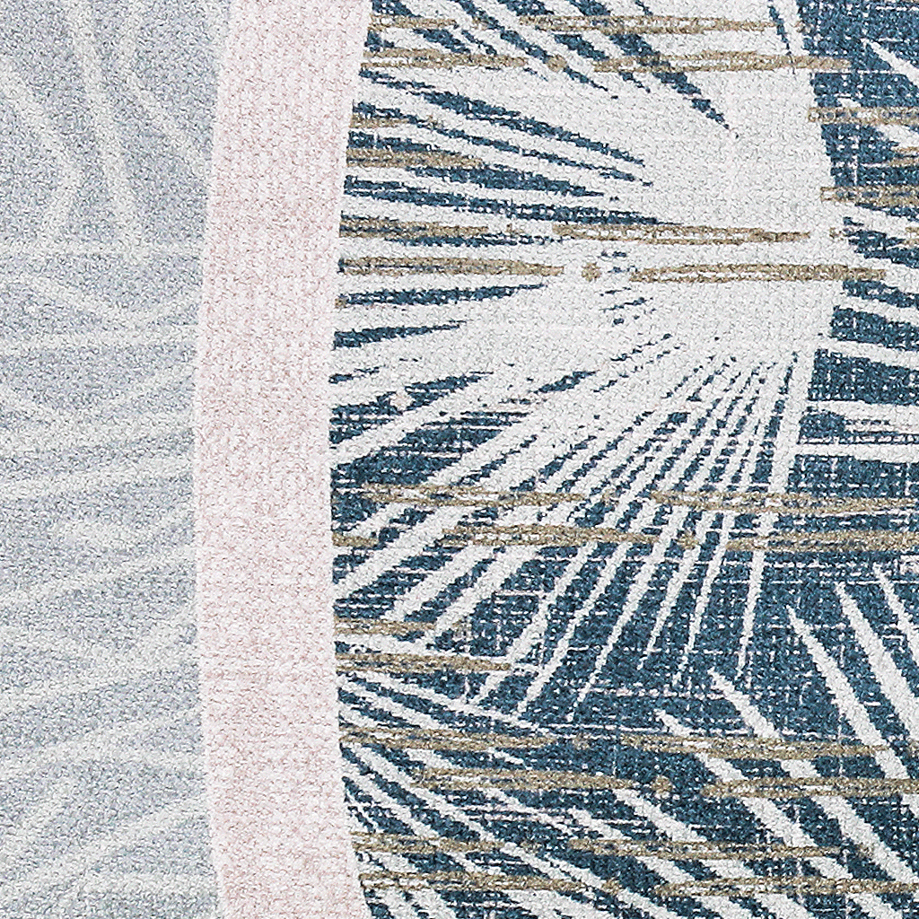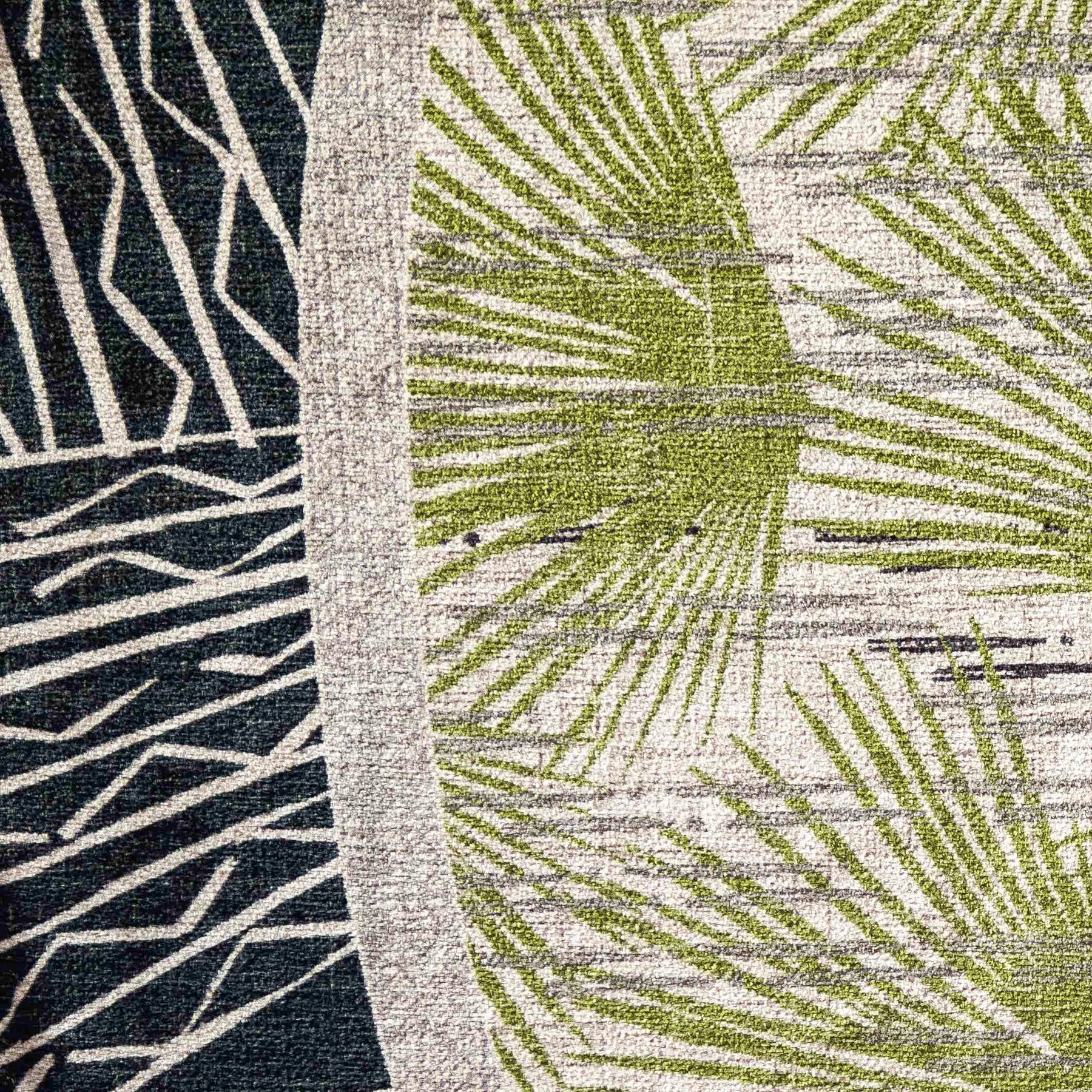 The Loulu pattern center design showcases the natural beauty of Hawai`i's only indigenous fan palm, the Loulu. This native plant is distinguished by its fanlike shape and rigid, pleated leaves, realized in its namesake print. The print plays upon Hawai`i's seamless approach to indoor/outdoor decor with Loulu. Addionally, it adapts from the literal state into a bold, stylized graphic to bring strong visual elements of nature into the home.
