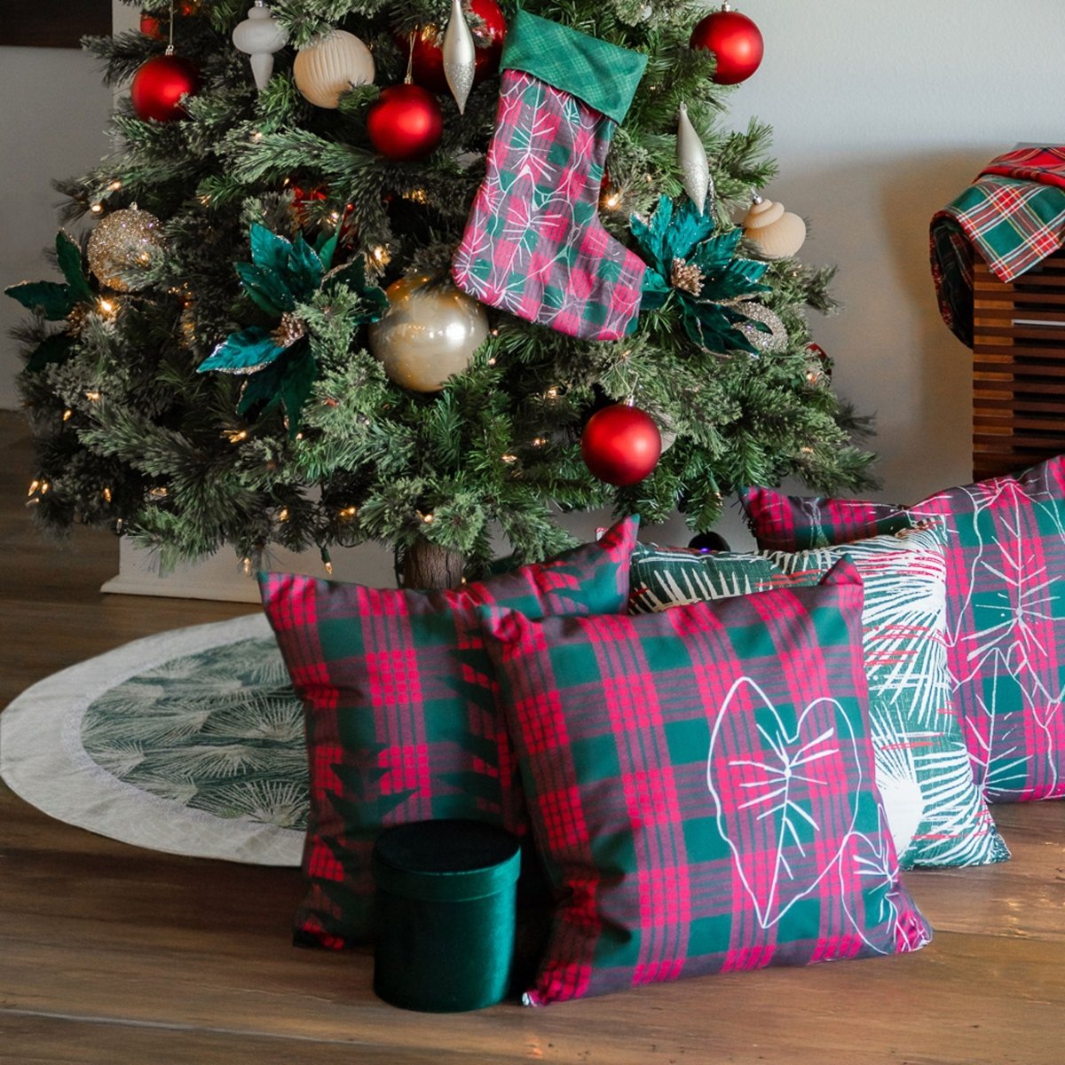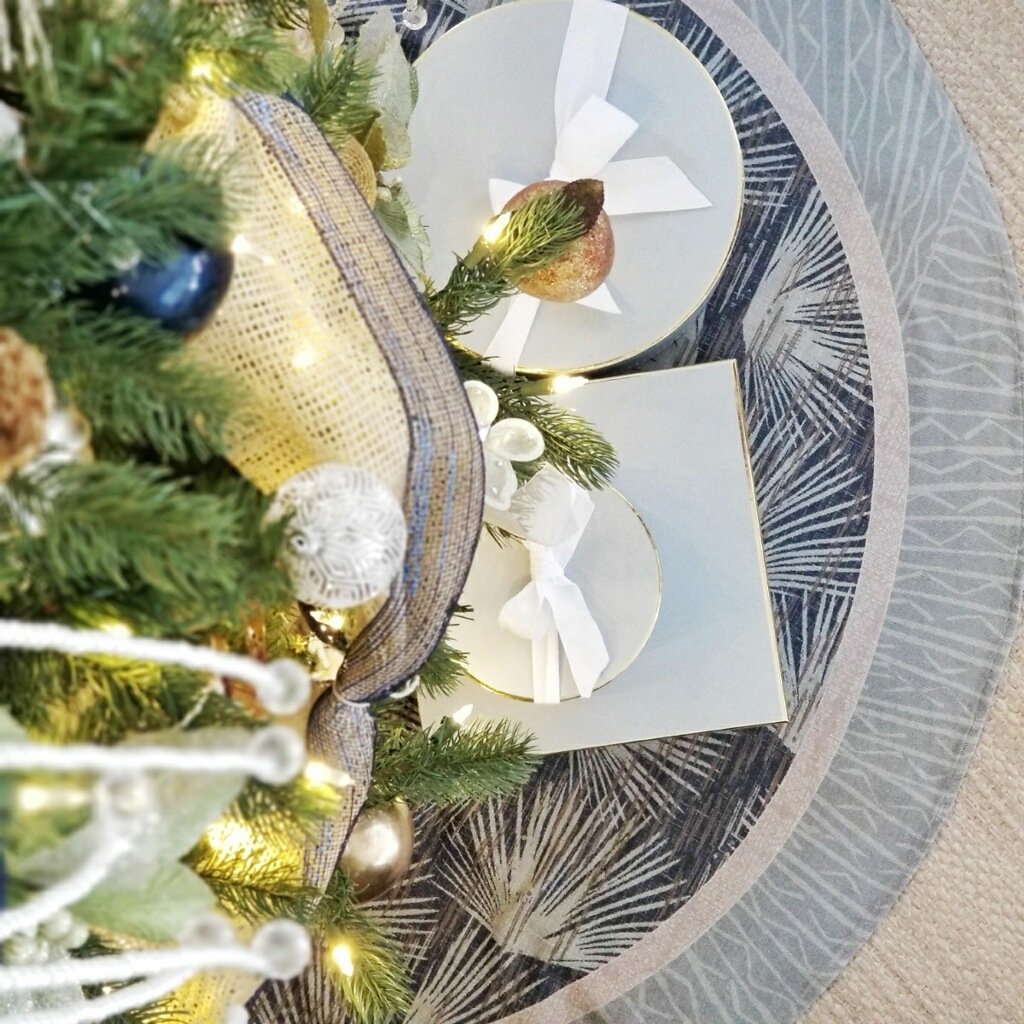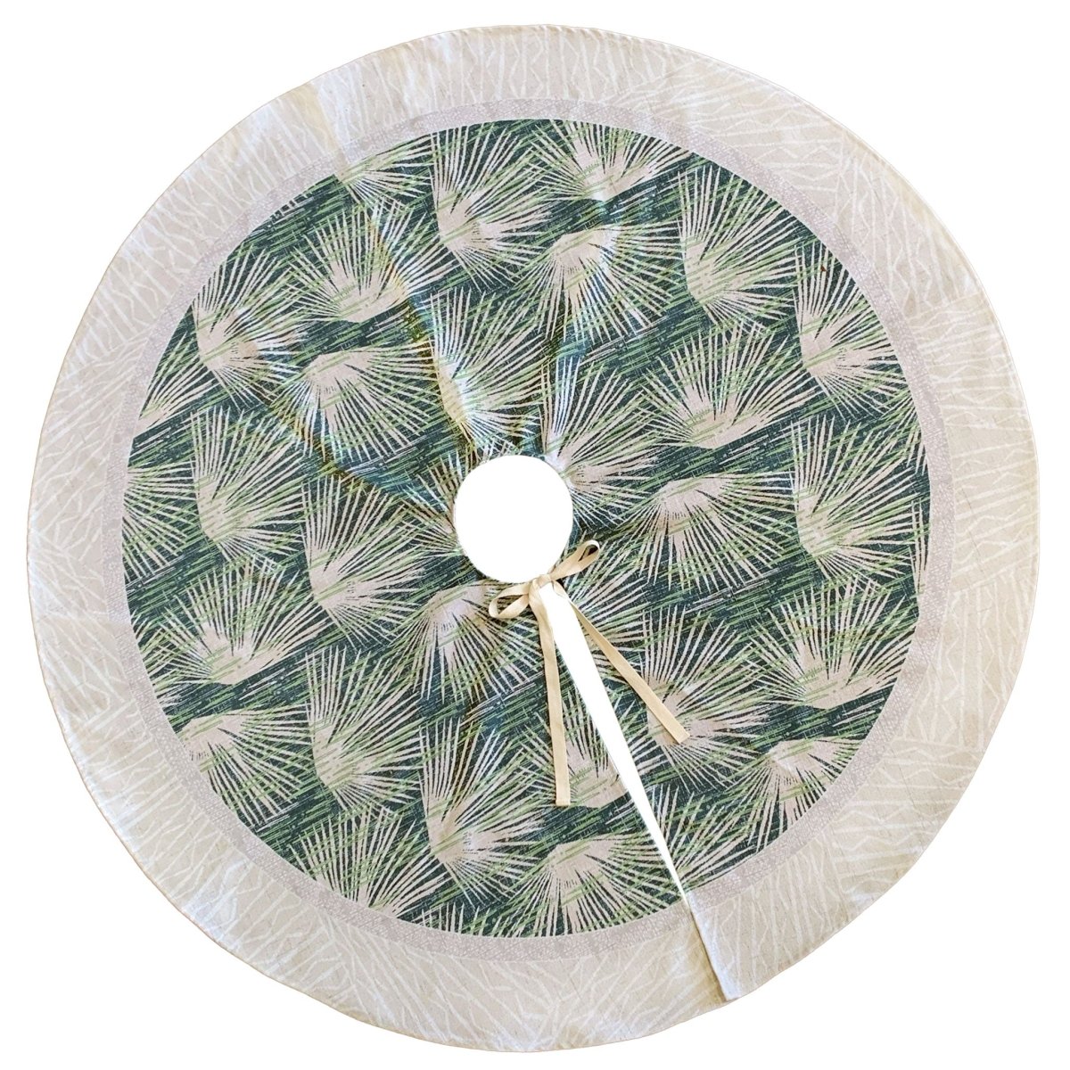 A Loulu Hawaiian print tree skirt adds an elegant and festive island touch to your holiday decor.