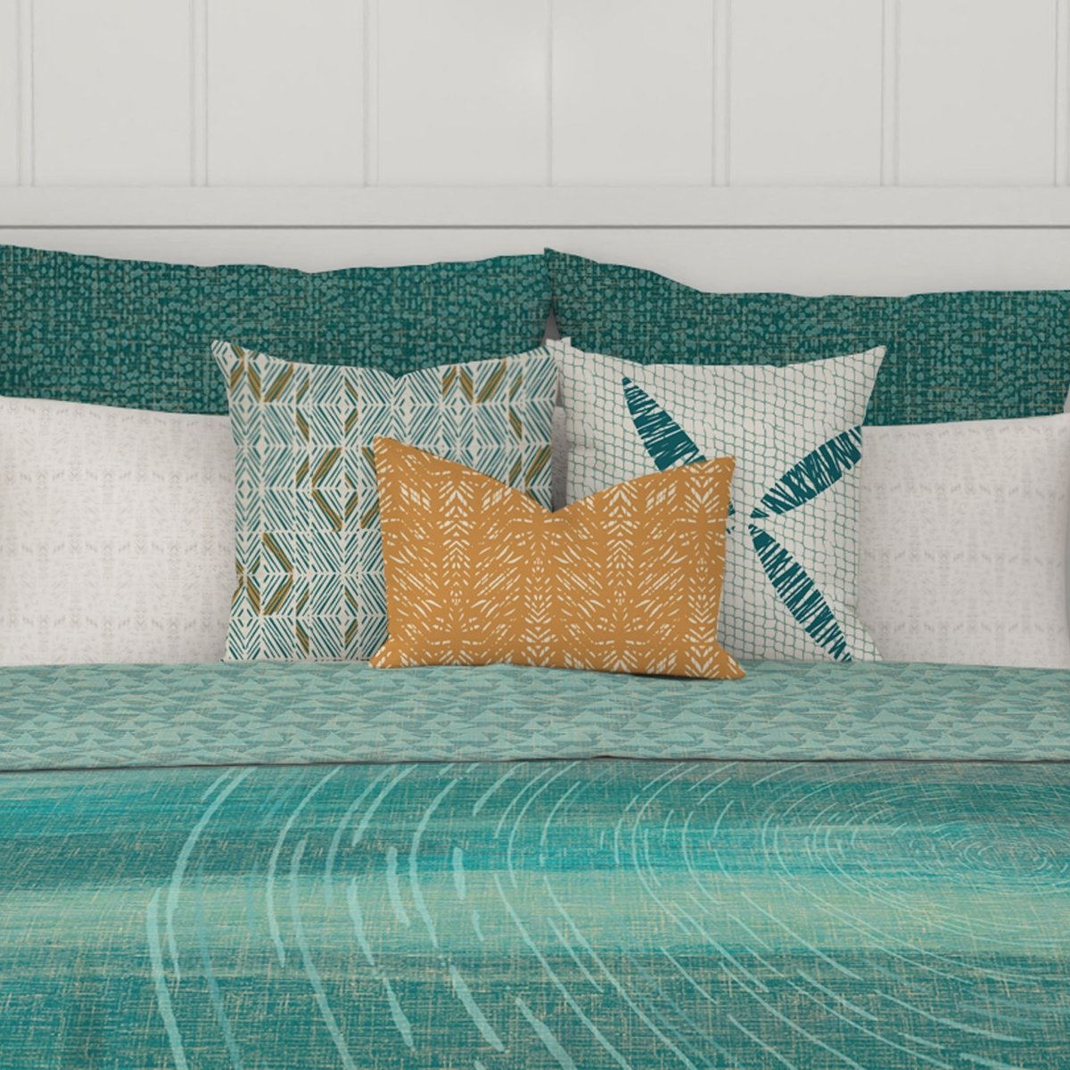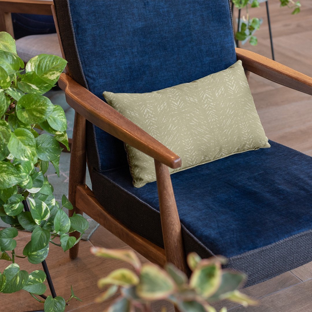 Close up of Batik Lumbar pillow in Aloe Aquamarine