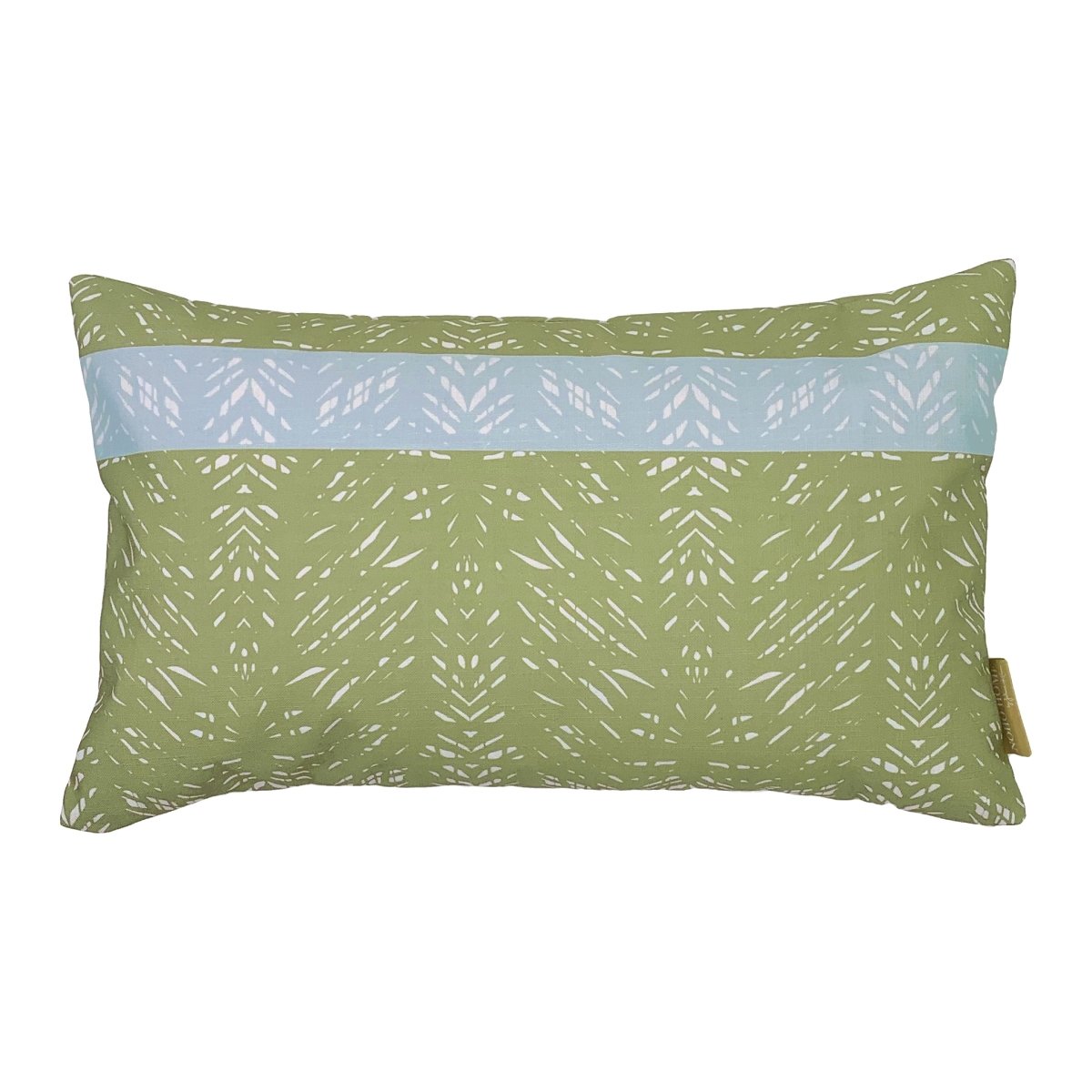 Aloe & Aquamarine Batik Lumbar Pillowcase Front View On a White Background