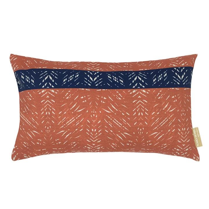 Rust & Navy Batik Lumbar Pillowcase Front View On a White Background
