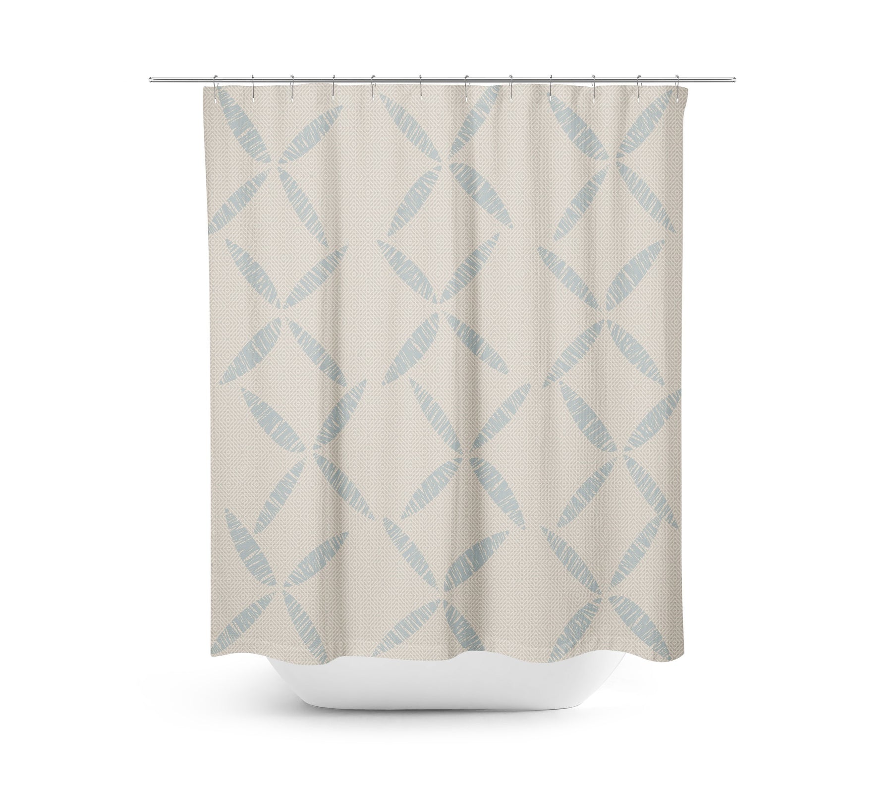 Designed to be the focal point of your bathroom space, our Kāpua Kai Shower Curtain in the colors Light Blue and Taupe is the epitome of elegant bathroom design. With its soft color palette and large graphic floral motifs, the Kāpua Kai Shower Curtain is a complement to any bathroom decor.
