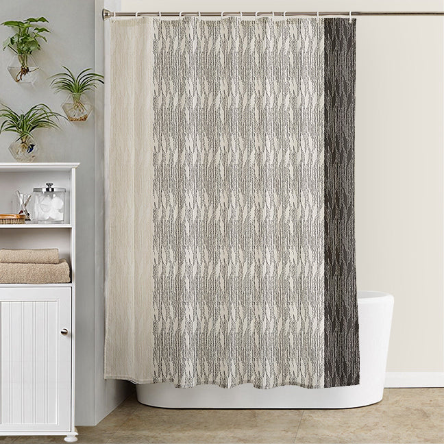 Designed to be the focal point of your bathroom space, our Pili Shower Curtain in the colors Black and Ivory is the epitome of elegant bathroom design. Harmoniously blending masculine and feminine qualities, asymmetric design and neutral colors, the Pili Shower Curtain is a complement to any bathroom decor.