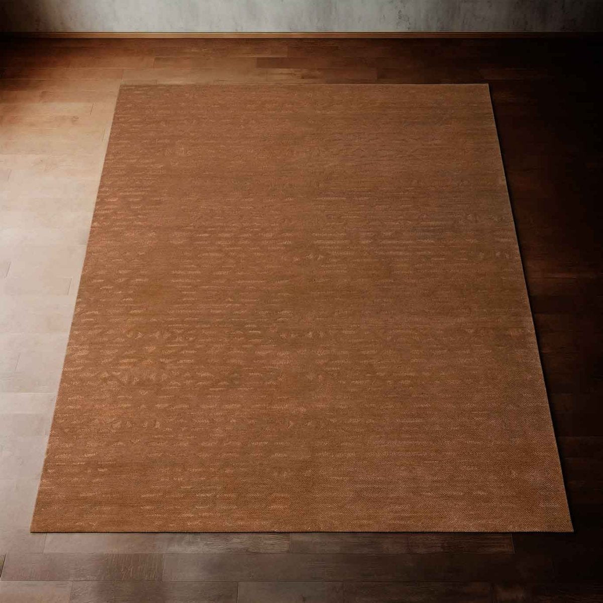 The Kua Area Rug captures the essence of Hawaiian landscapes with its subtle, geometric design. Hand-tufted from 100% premium Indian wool, this versatile rust-colored rug offers exceptional durability and a luxurious feel underfoot.
