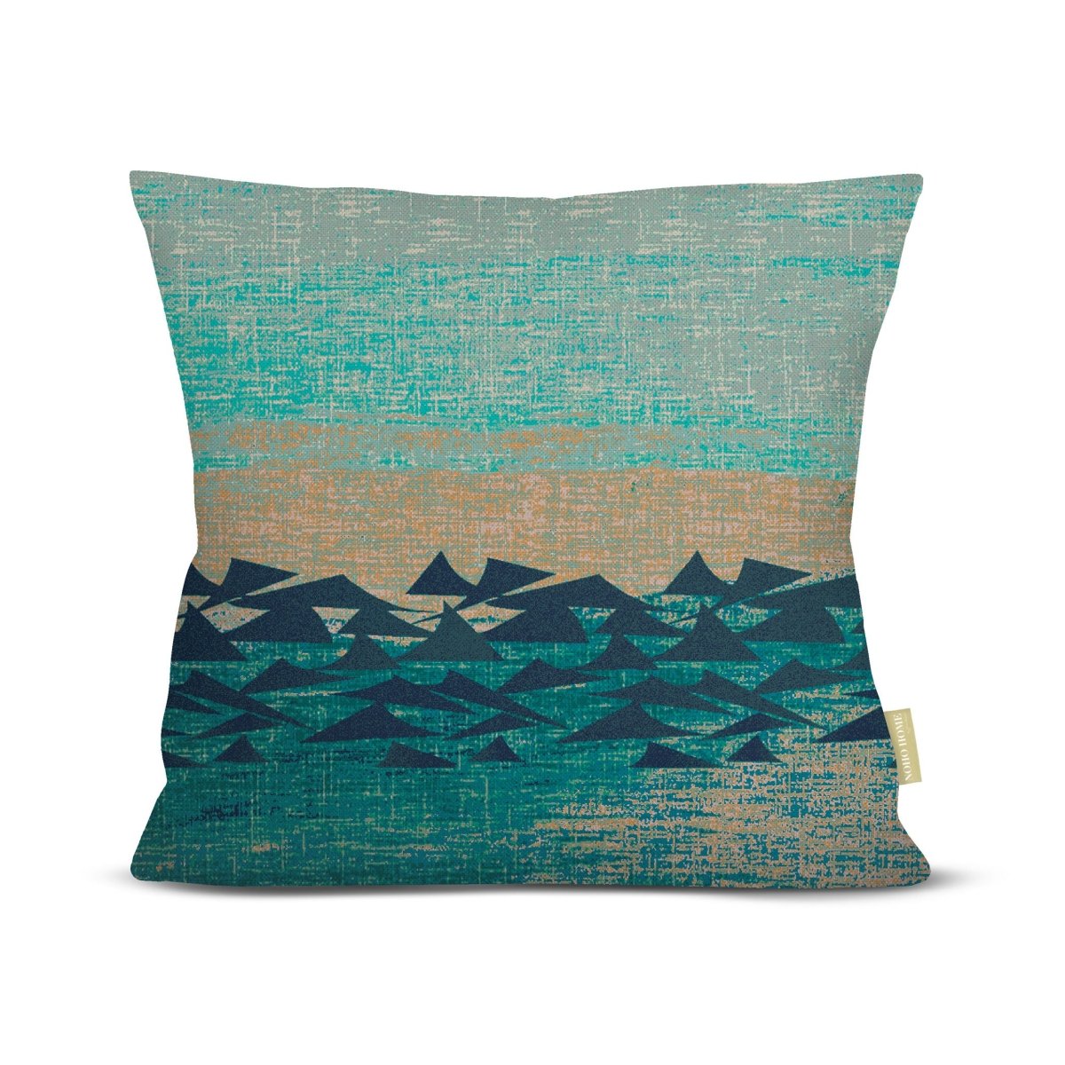 'Ōlali Square Pillowcase resting on a throw on a comfortable chair in a corner of cozy area with filtered light a small tree