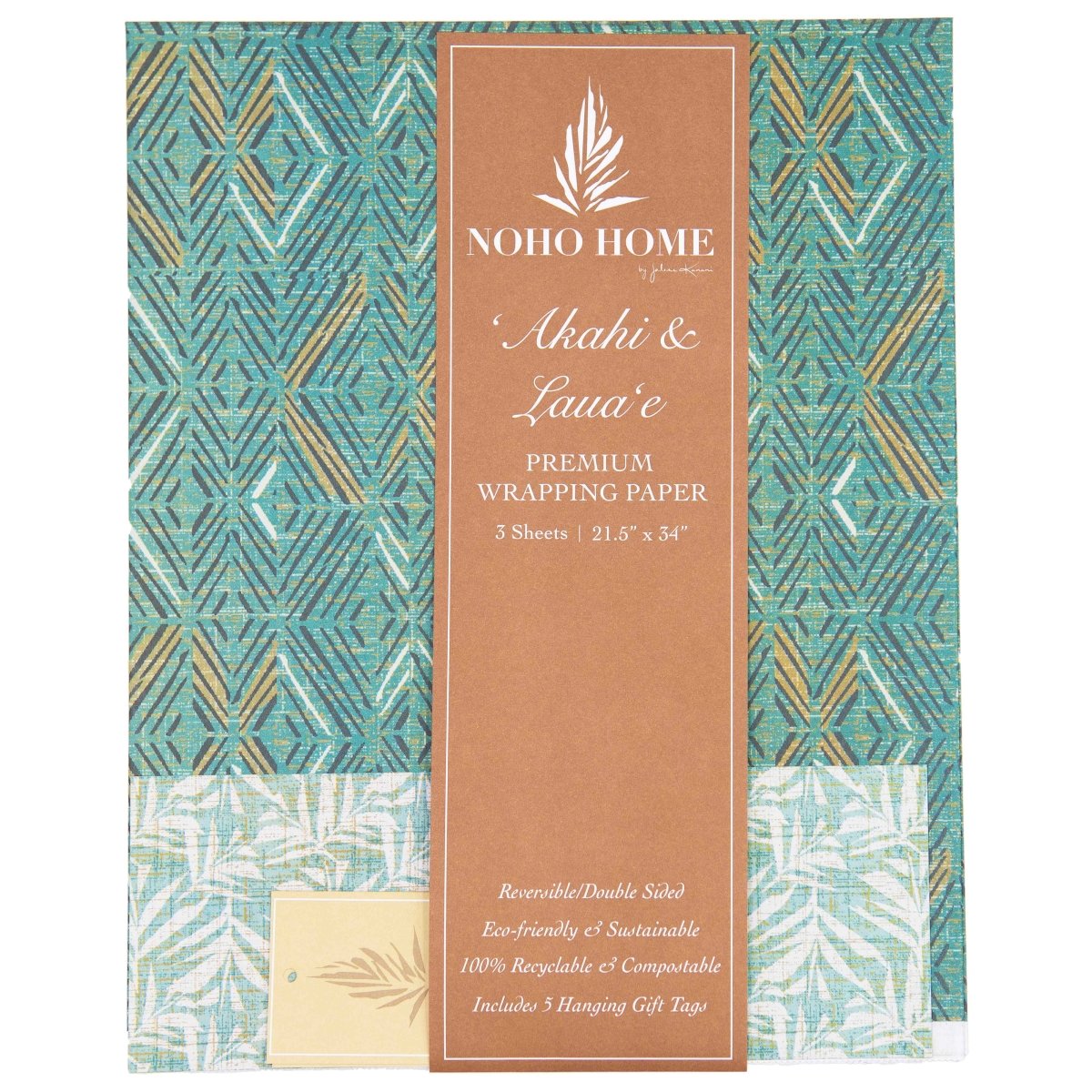 Give the gift of home with our premium ʻAkahi & Lauaʻe Wrapping Paper. Share your #StyleWithAloha and elevate your gift-giving experience with two coordinating NOHO HOME prints on each sheet. Includes 5 hanging gift tags.