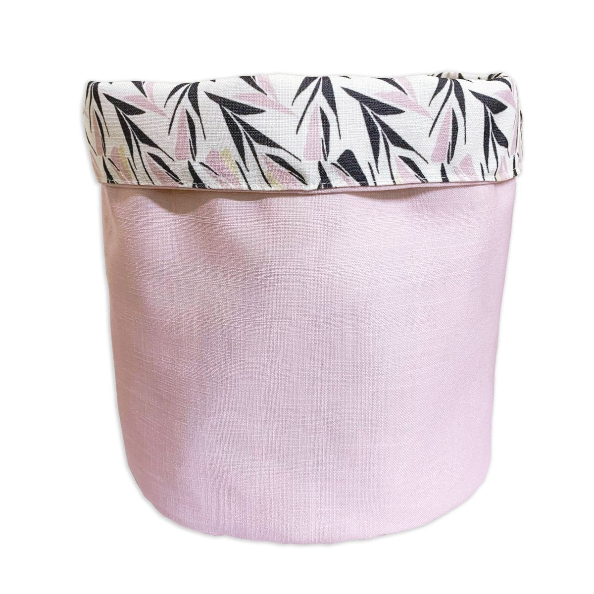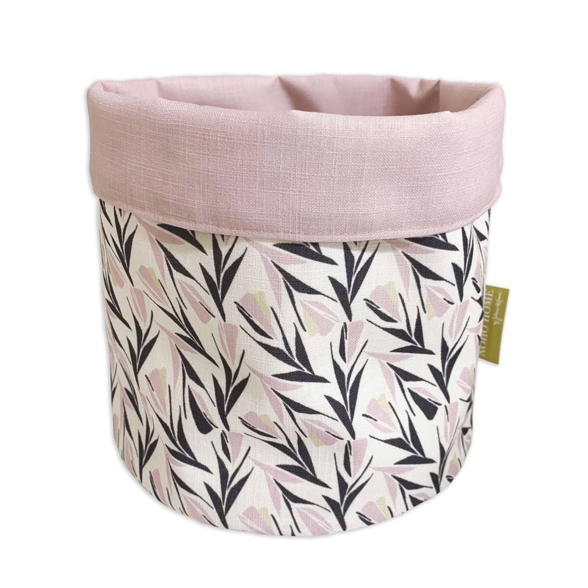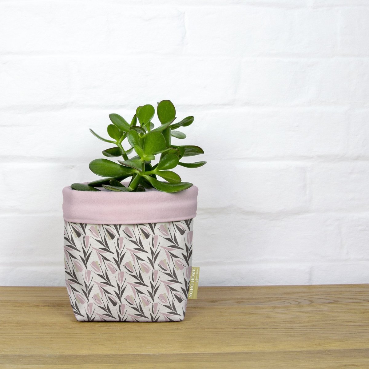 Rose Lokelani Fabric Planter - a vibrant, native Hawaiian design with soft pink and muted grey hues.