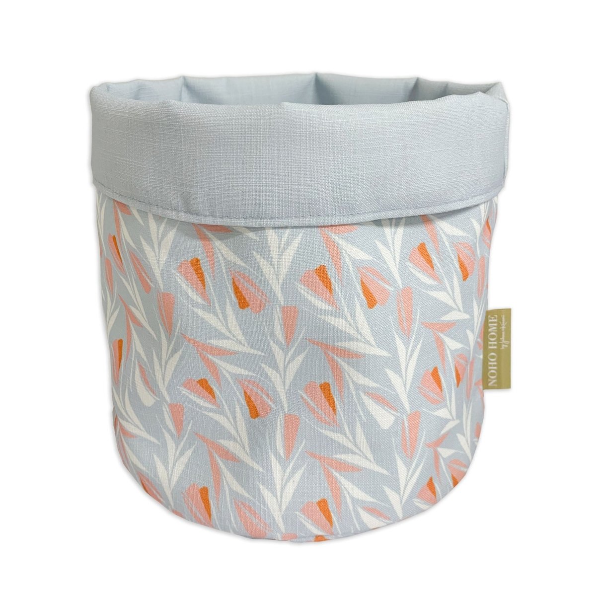 Sky Lokelani Fabric Planter - a vibrant, native Hawaiian design with pale blue and peach hues.