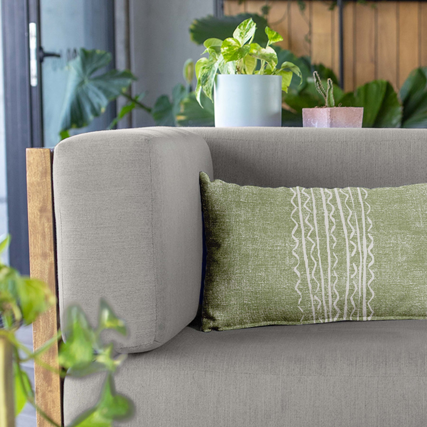 Aloe Niho Lumbar Pillowcase Set On a Grey Fabric Modern Sofa