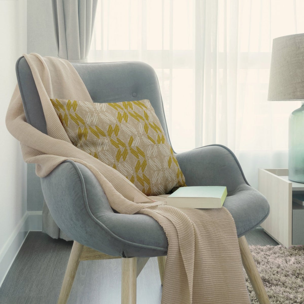 The Peʻa print layers neutral crosses against vibrant accents create a dynamic, textured scene. Additionally, crafted using ʻohe kāpala, or bamboo stamp, the design adds depth and richness. Peʻa's unique look enhances any room, offering a touch of tropical sophistication.