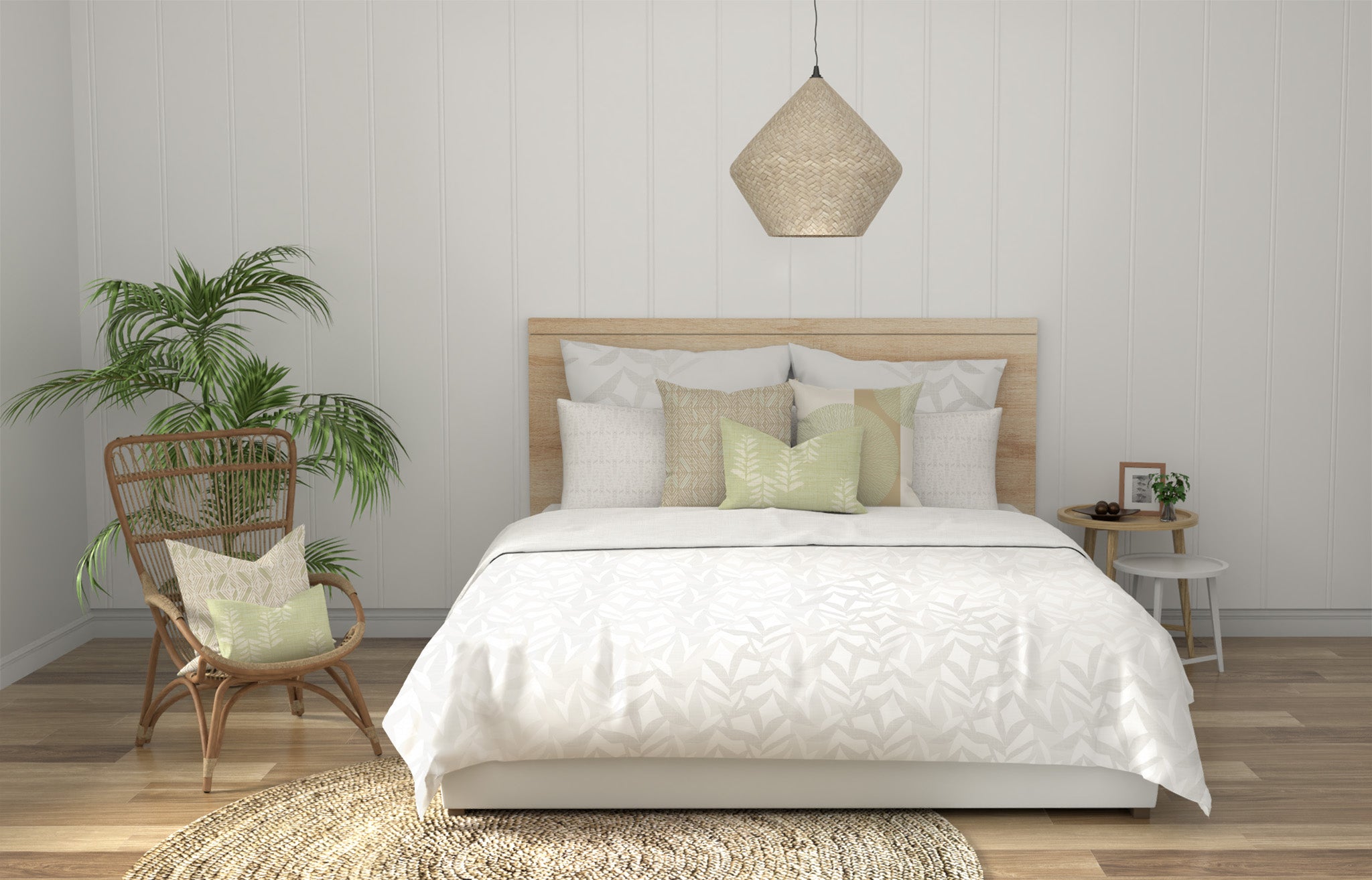 Add an Uluhe Lumbar Pillowcase in Mint to your space for a beautiful accent piece that pairs effortlessly with our Lele Bed Set.